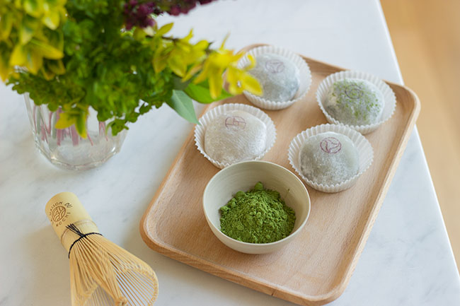 - un coffret de 8 mochis « matchamicaux », composé de parfums qui s’accorderont au matcha, chacun à leur manière : 2 mochis yuzu, 2 mochis anko, 2 mochis matcha et 2 mochis sésame noir