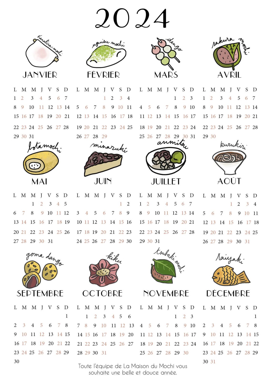 Pour télécharger la version pdf à imprimer, cliquez sur ce lien : https://admin.maisondumochi.fr/wp-content/uploads/2024/01/calendrier-2024.pdf