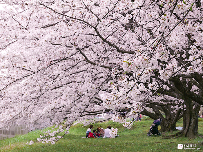 Avril au Japon est le mois des cerisiers. Les beaux jours sont revenus et le pays entier est recouvert de ces petites fleurs délicates. Les Japonais se précipitent dans les parcs afin de faire hanami, un mot qui veut dire “contempler les cerisiers”. On apporte une grande toile qu’on pose par terre et on s’installe dessus en famille, entre amis ou entre collègues pour partager des bentôs et des boissons.