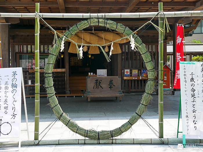Enfin, le 30 juin, c’est Nagoshi no harae. Les sanctuaires japonais s’équipent de grands cercles de paille dans lesquels il faut passer plusieurs fois afin de se purifier en vue du passage à l’été et d’appréhender le reste de l’année avec sérénité. Autrement, les sanctuaires mettent à disposition des pèlerins des petites poupées de papier appelées katashiro. Le principe est simple : on écrit dessus son nom et son âge, on la passe sur la partie du corps à « exorciser » (éviter les blessures ou maladies) et on souffle dessus trois fois pour chasser les mauvaises ondes. Les prêtres se chargent ensuite de les brûler. Ce jour-là on déguste une friture ronde aux légumes et crevettes appelée kakiage et le wagashi minazuki.
