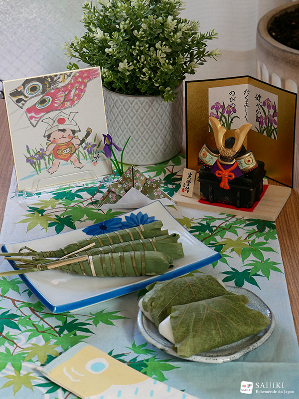 Enfin, niveau gastronomie, on mange deux sortes de wagashi : un kashiwa mochi et un chimaki. Le kashiwa mochi est un simple mochi fourré à la pâte de haricots rouges et enveloppé d’une feuille non comestible de chêne. Cette pâtisserie symbolise la descendance et la prospérité de la lignée familiale. Le chimaki quant à lui est un tube de riz gluant cuit à l’étouffé puis enveloppé dans une feuille de bambou. Il est censé repousser les mauvais esprits et aider l’enfant à vaincre ses difficultés.